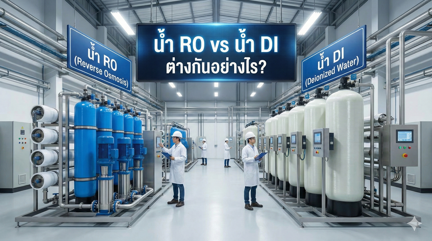 น้ำ RO vs น้ำ DI ต่างกันอย่างไร? เลือกระบบไหนให้เหมาะกับไลน์การผลิตและลดต้นทุนระยะยาว